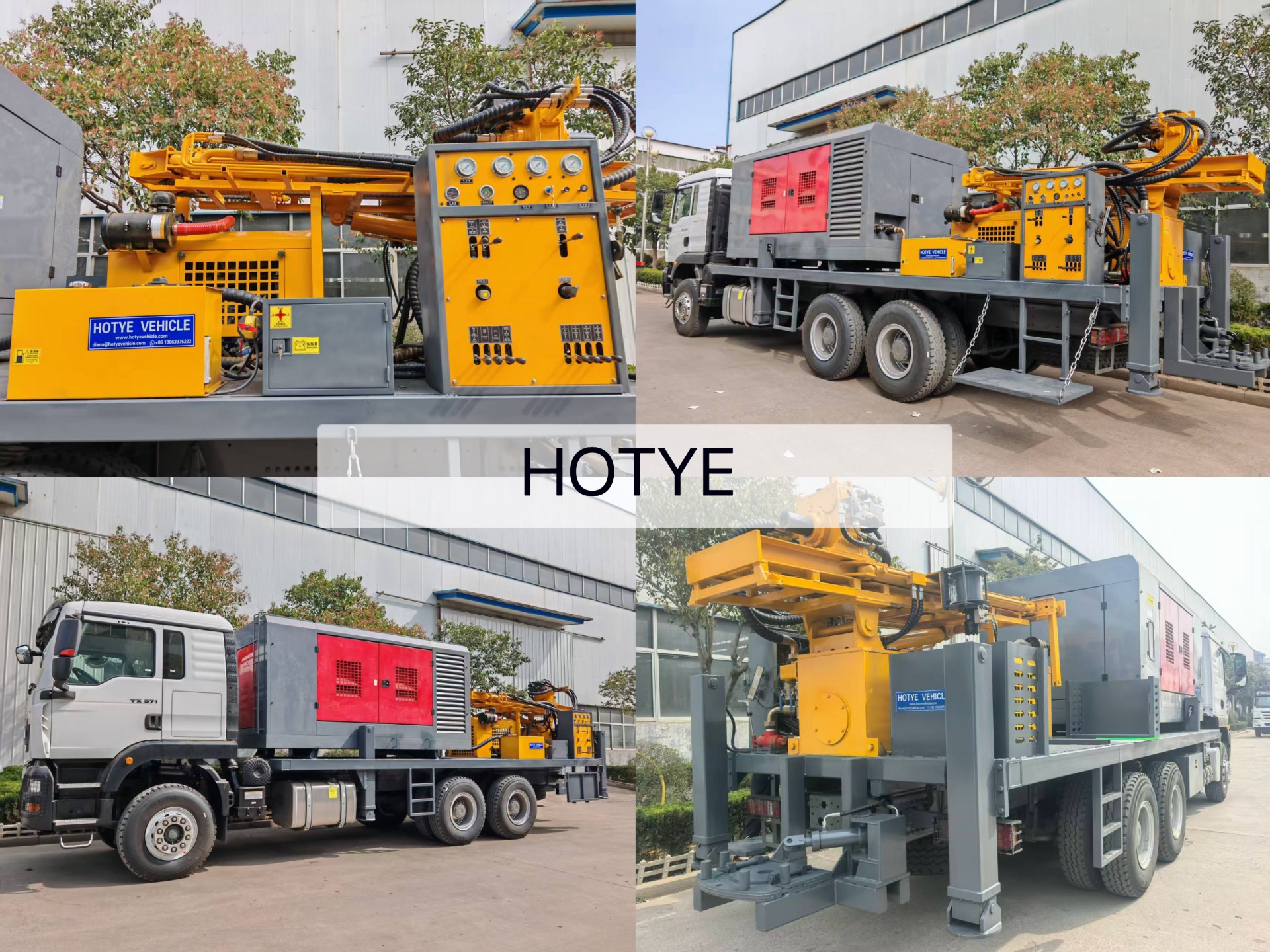 HOTYETruck-mountedWaterWellDrilingRig ProductIntroductionOurtruck-mountedwaterwelldrillingrigisdesignedforefficientanddeepwaterwelldrilling.Itcombinesmobility,power,andd